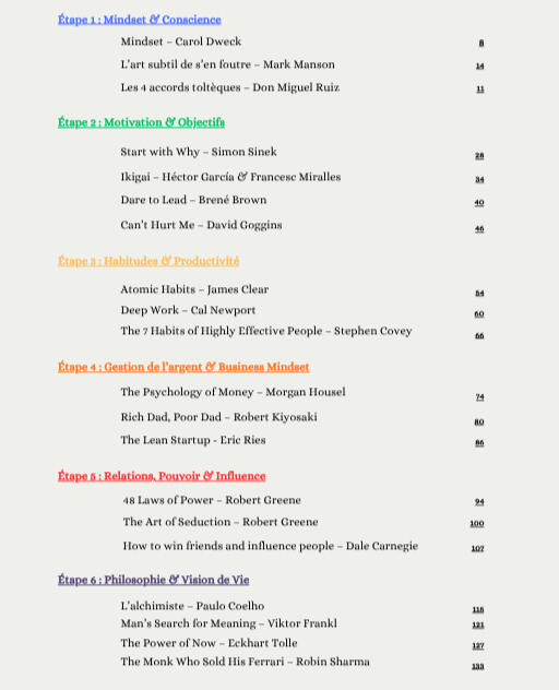 ce guide te propose un parcours clair pour reprendre le contrôle de ta vie.Mais surtout :Ce n’est pas un simple résumé.Tu ne lis pas pour accumuler des idées…